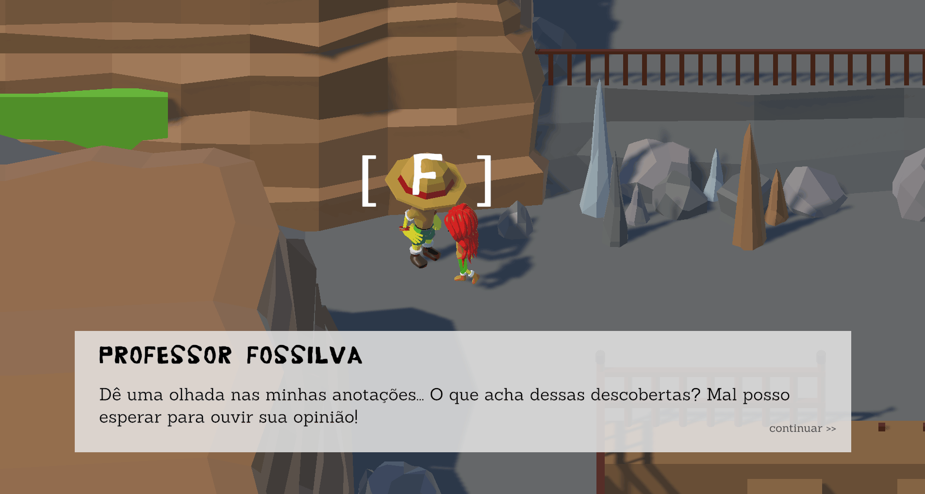 PaleoCodex é um jogo digital educativo desenvolvido para disciplina TCP VI (Jogos educativos) e busca tornar o ensino de Ciências Naturais para o Ensino Fundamental mais dinâmico e interativo, estimulando a curiosidade dos alunos do 6º Ano sobre a Paleontologia Brasileira e a formação de fósseis. Nosso objetivo é transformar a aprendizagem em uma aventura exploratória, onde o jogador descobre os mistérios do passado do jogo enquanto aprende sobre conteúdos didaticos previsto pela Base Nacional Comum Curricular (BNCC) dessa etapa de ensino se apresentando aos alunos ao diluído ao longo de desafios educativos e mecânicas envolventes de aventura.